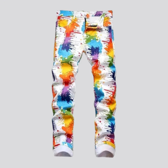 Painted graphic stretchable men's jeans