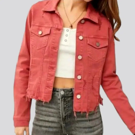 Distressed raw-hem women's denim jacket