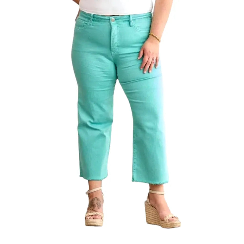 Not just your regular pair of mom jeans, these cutoff-bottoms feature a high-waist design that accentuates your curves and flatters your figure, making them a go-to for any occasion. With a zipper and button closure, these jeans offer a secure fit while giving you the freedom to move comfortably. The stretchy fabric ensures that you stay carefree all day long, without compromising on style.