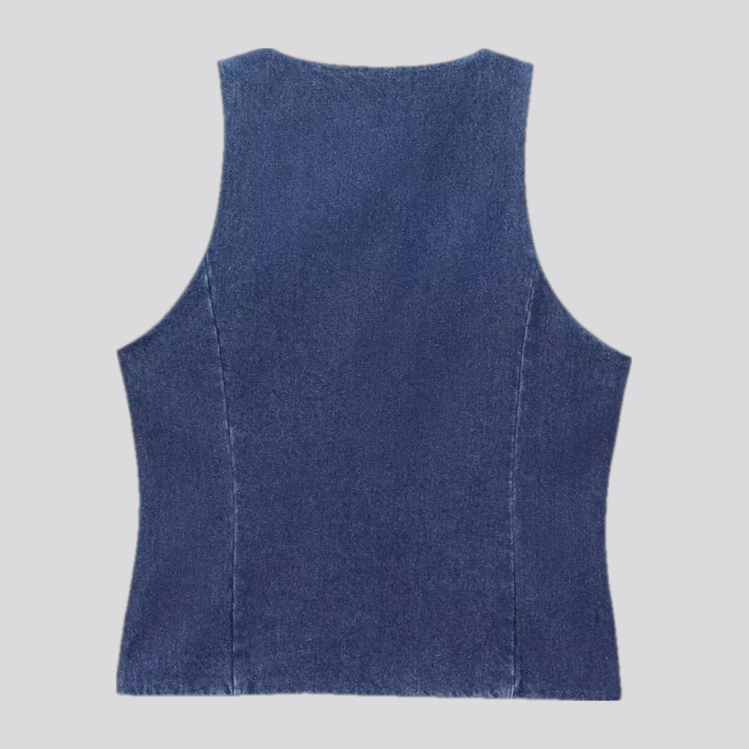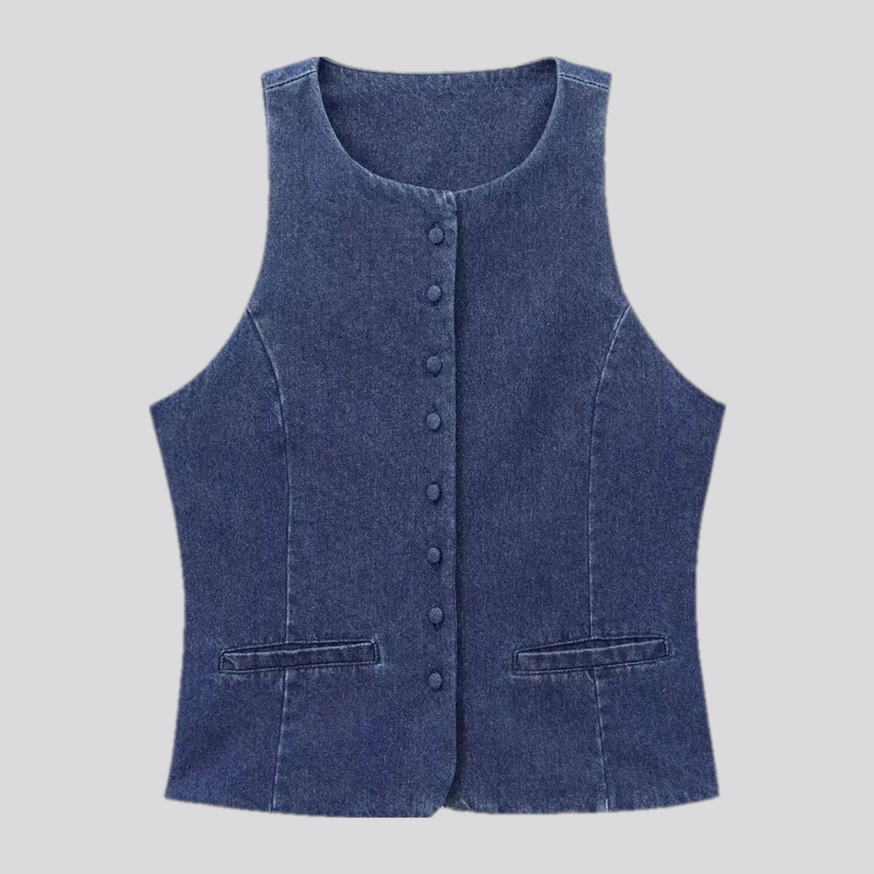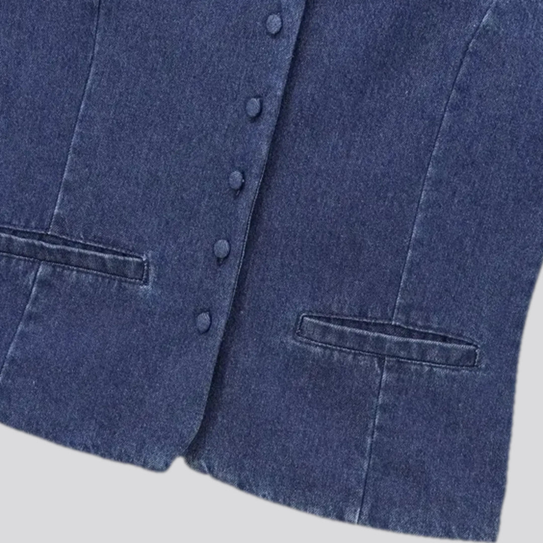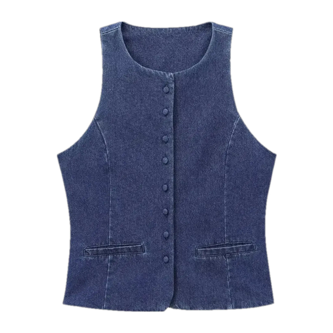 Introducing the perfect blend of style and comfort for your spring and summer wardrobe – our chic ladies' jean vest, crafted from high-quality cotton denim for that ideal breathable feel during warmer days.